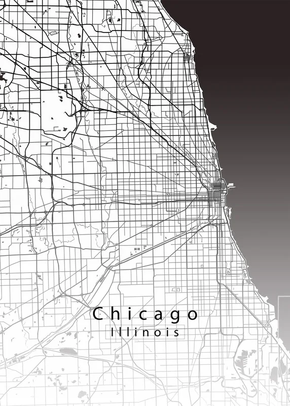 Plakát Chicago Illinois City Map white