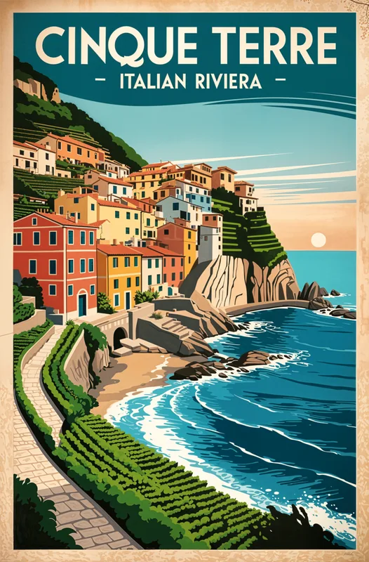 Plakát Cinque Terre Vintage Poster – Italian Riviera Art Print