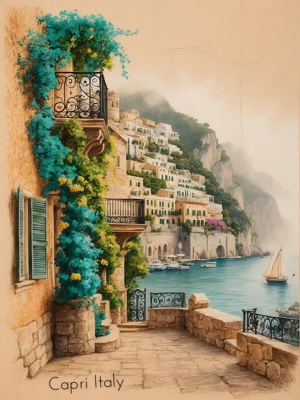 Samolepka Classic Capri Island in Vintage-Inspired Illustration Art
