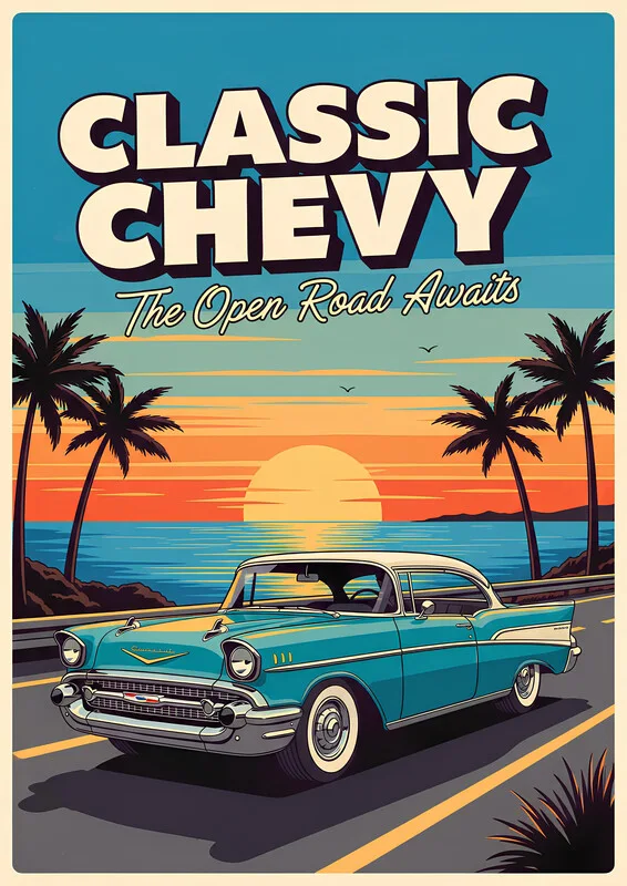 Obraz na plátně Classic Chevy 1957 Bel Air Vintage Travel Poster