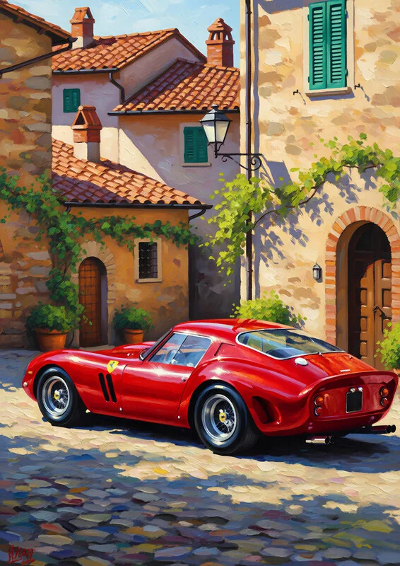Plakát Classic Ferrari 250 GTO Parked in Tuscan Italian Village