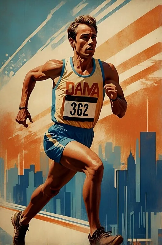 Obraz na plátně Classic Marathon Scene: Vintage-Inspired Sports Illustration