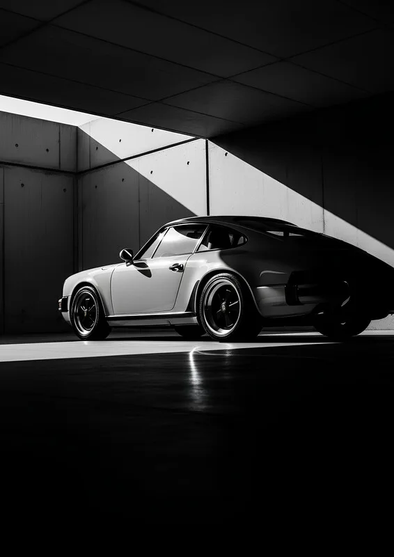 Samolepka Classic Porsche 911 in White - Dramatic Black and White