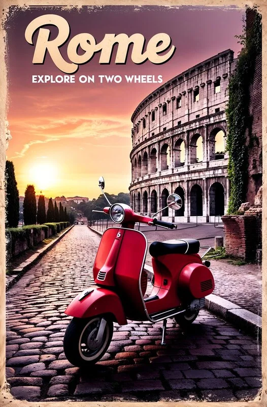 Obraz na plátně Classic Vespa in Rome Poster: Vintage Italian Charm