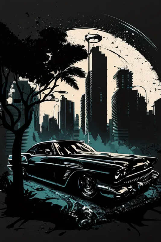 Obraz na plátně Classical Black Car Camaro Driving Into The Night, Chevrolet