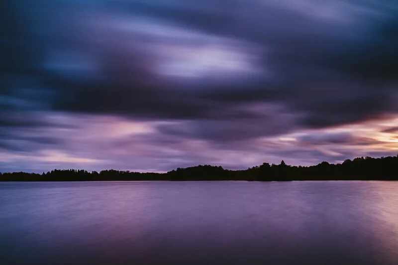 Obraz na plátně Cloudy Sunset over lake