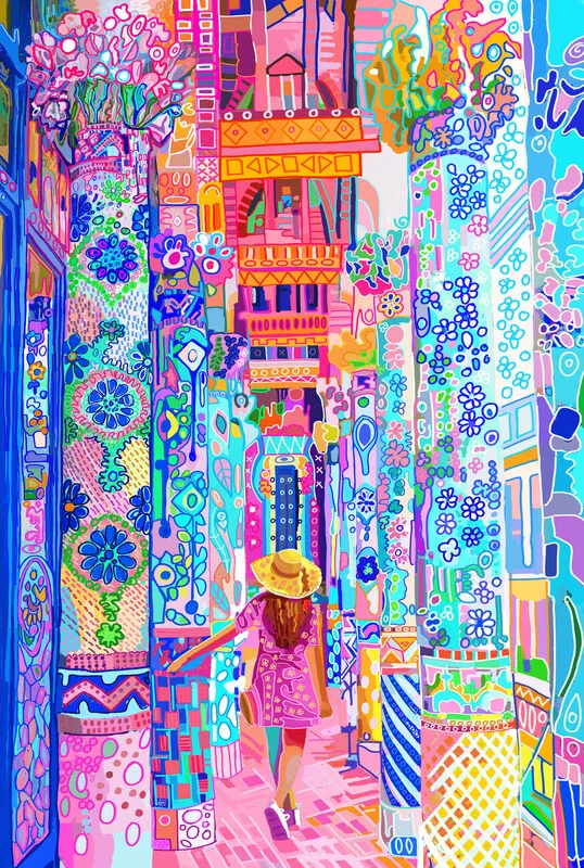 Obraz na plátně Colorful Tourist in Gaudi's House
