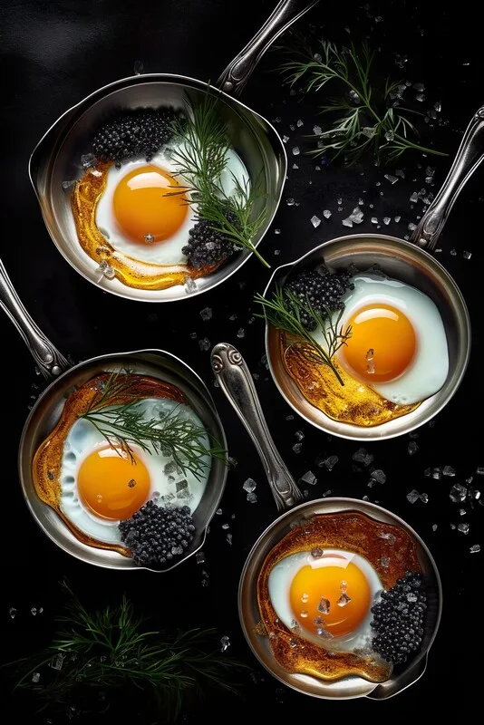 Obraz na plátně Cooked Eggs in little pans