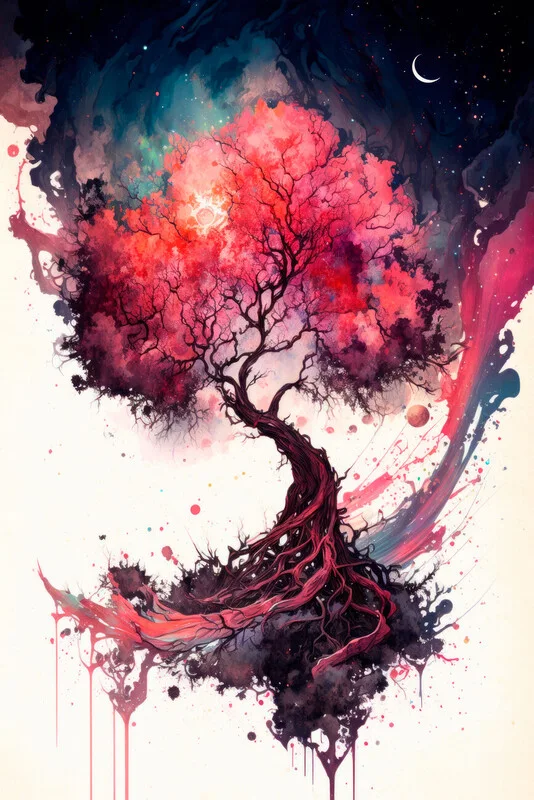 Obraz na plátně Cosmic red yggdrasil painted by watercolor