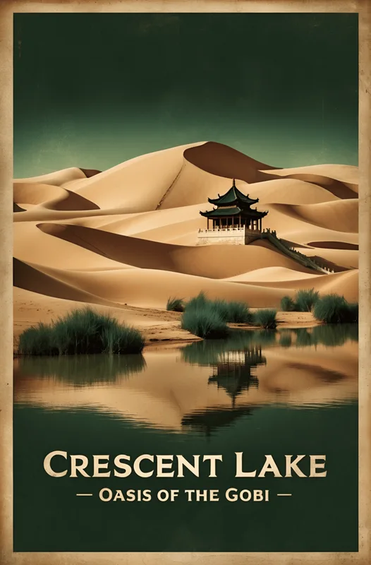 Samolepka Crescent Lake Vintage Travel Poster – Oasis of the Gobi