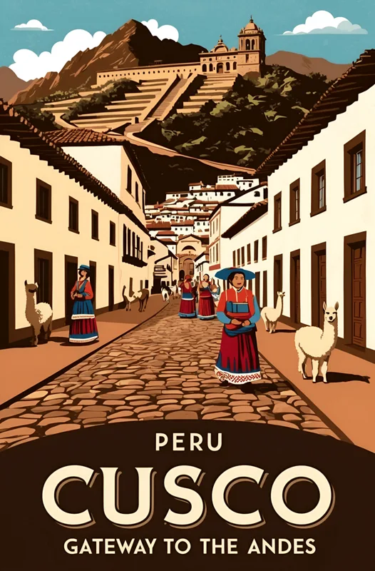 Plakát Cusco Vintage Poster – Gateway to the Andes Art Print