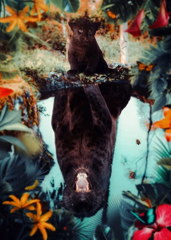 Samolepka Cute baby baghera exotic jungle puddle reflection