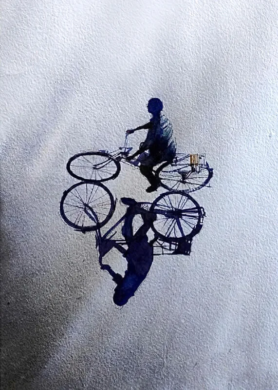 Samolepka Cyclist Silhouette and Reflection Ink, Room wall art ideas