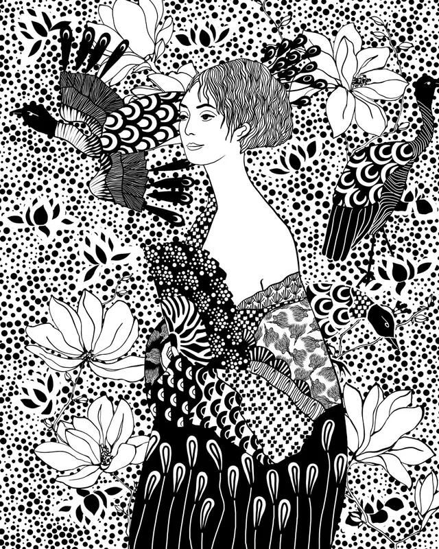 Samolepka Dame mit Fächer (Lady with a fan)