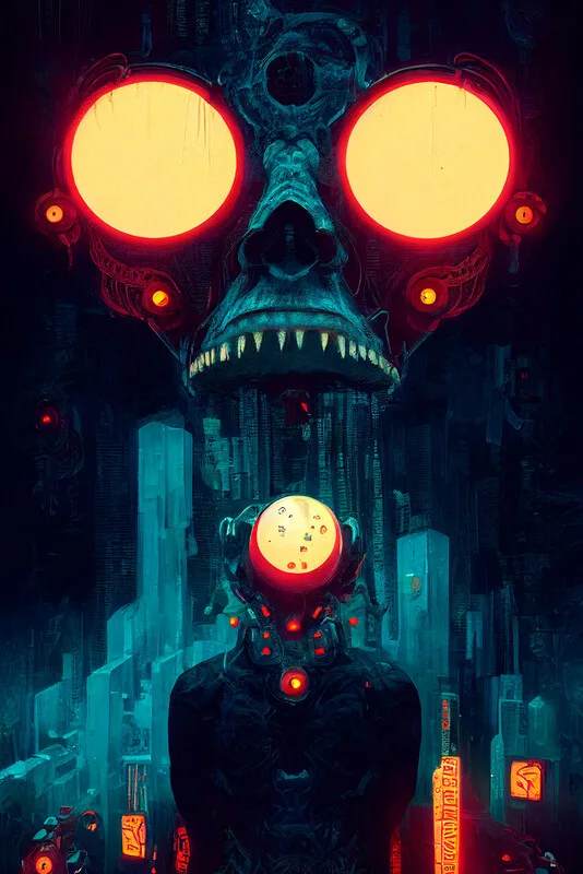 Obraz na plátně Dark tech god with acolyte
