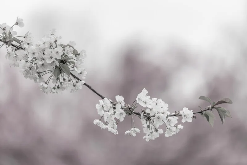 Cherry blossom time marks the beginning of spring. Charming detailed image in delicate pink. Enchanting nature impression.