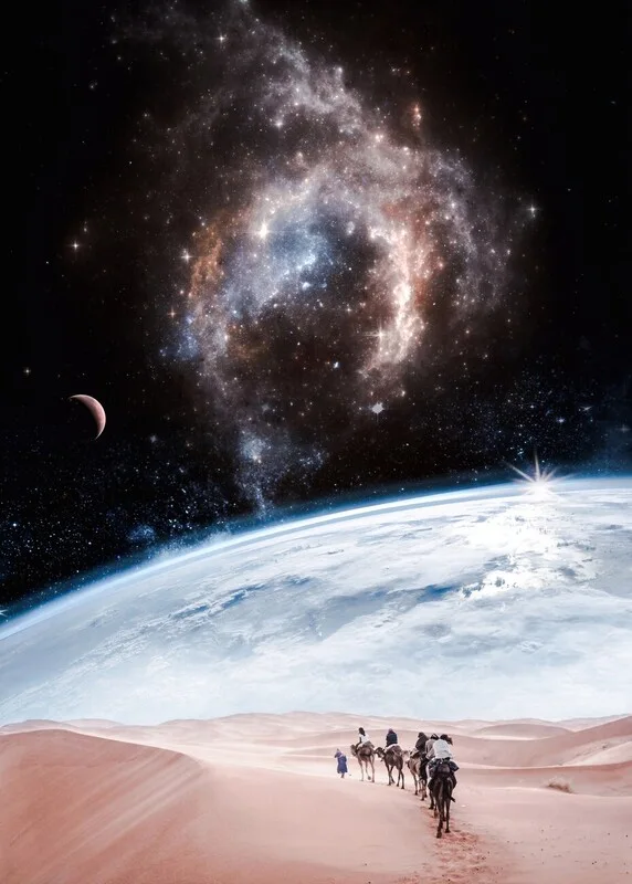 Samolepka Desert of another planet and earth spaceview