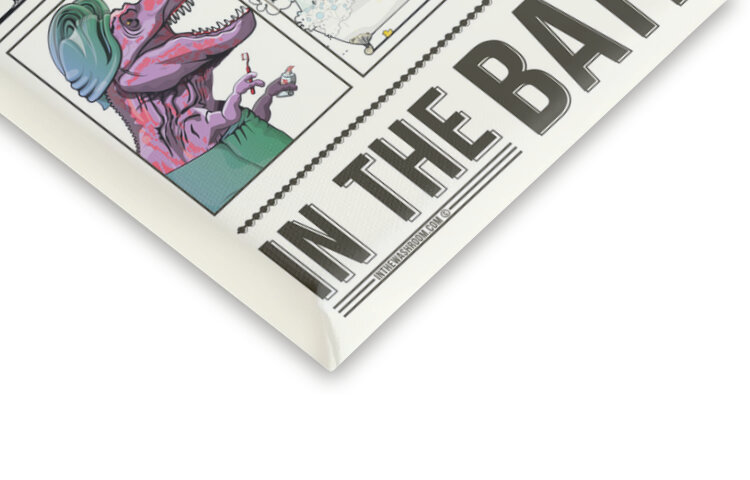 Dinosaurs in the Bathroom, some on the toilet, some in the bath. Perfect toilet humour for your child's bathroom.