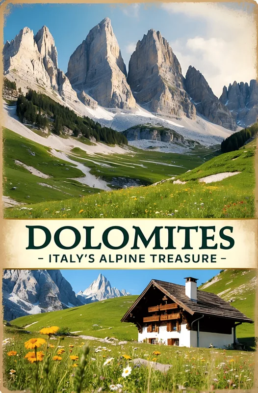 Obraz na plátně Dolomites Vintage Travel Poster – Italy’s Alpine Treasure