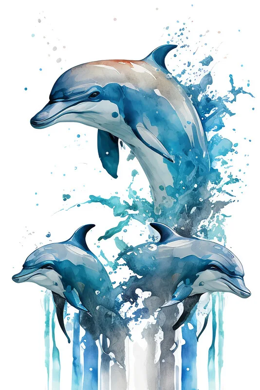 Samolepka Dolphins Delfine Dauphins Delfines on Watercolor Aquarell