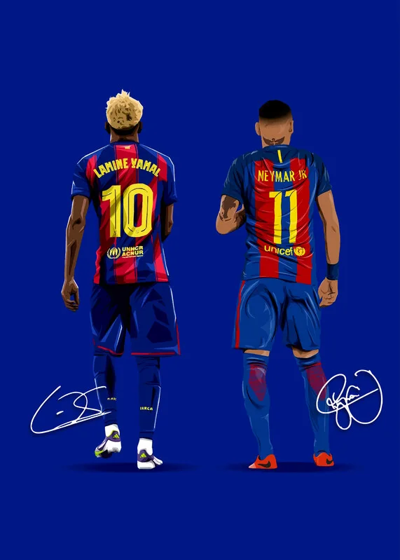 Samolepka Drawing Art Yamal And Neymar Jr Illustration Poster
