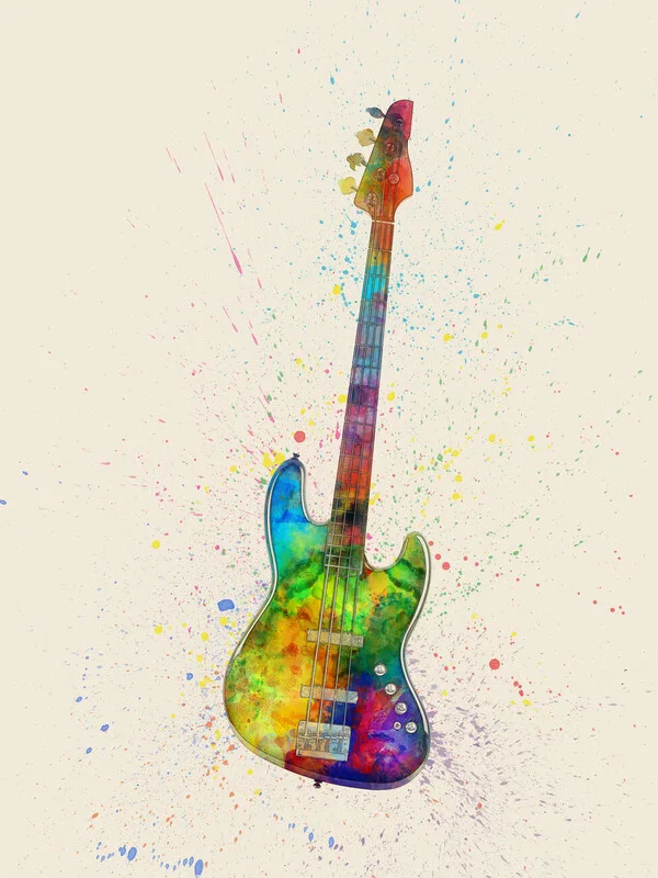 Samolepka Electric Bass Guitar Abstract Watercolor