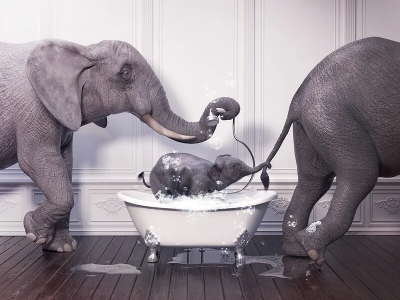 Samolepka Elephant in Tub Print Wall Art,penguin art,Elephant love