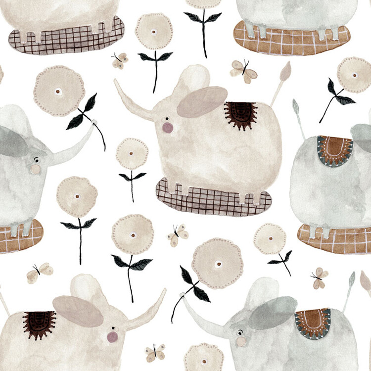 Samolepka Elephants and Flowers