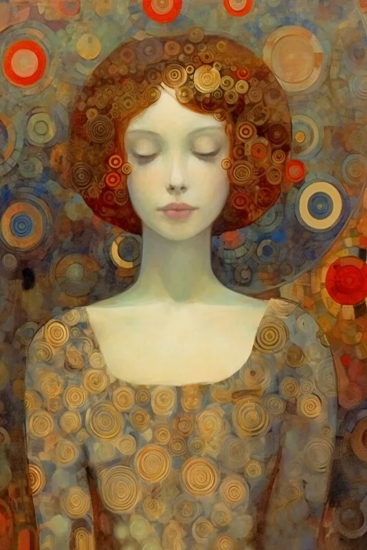 Obraz na plátně Emel Tunaboylu - Red haired Girl with circle texture