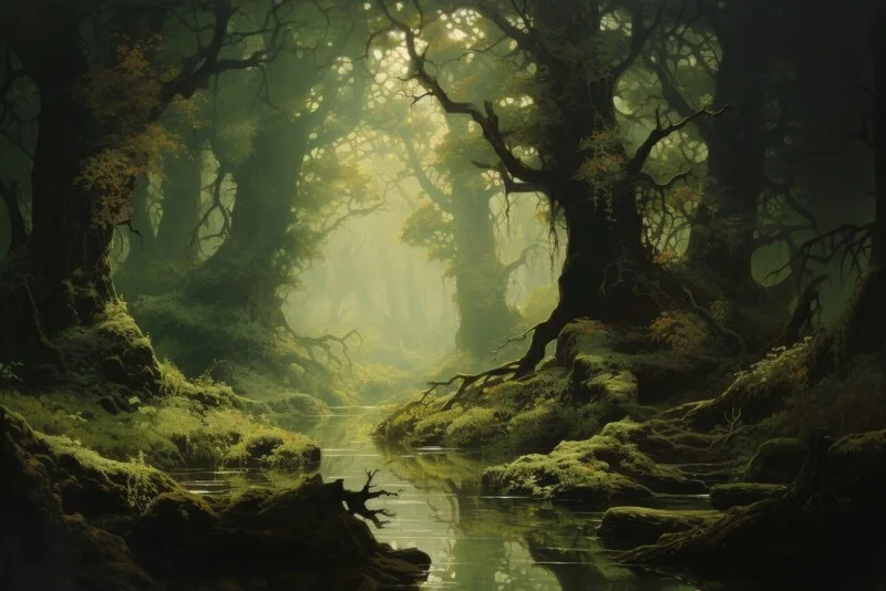 Obraz na plátně Enchanted Forest Morn Misty Creek