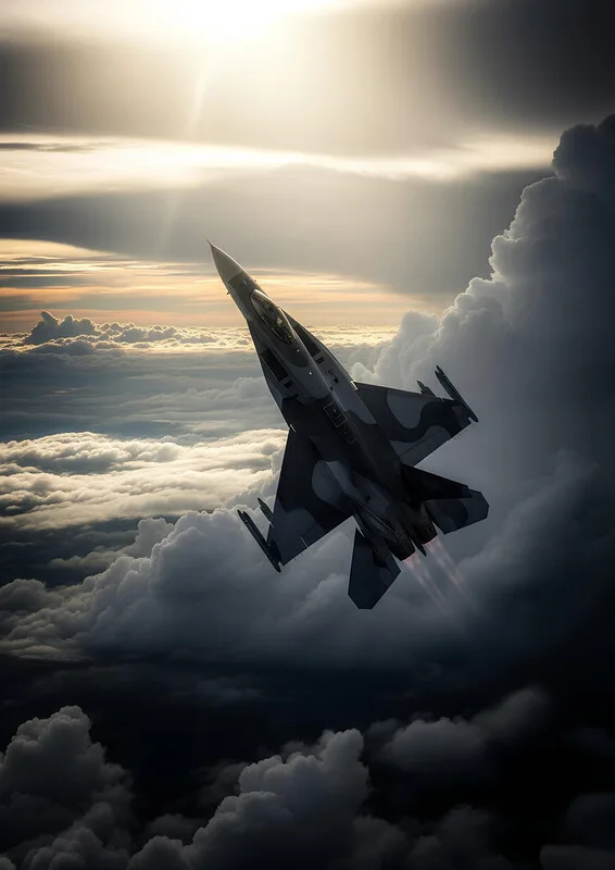Samolepka Eurofighter Typhoon Ascending Through Dramatic Storm Clouds