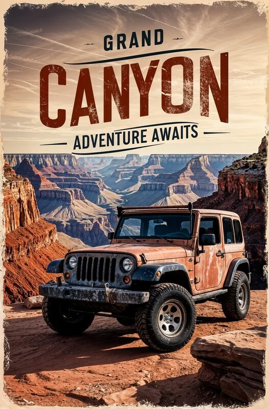 Samolepka Explore the Grand Canyon Poster: Nostalgic Jeep Adventure