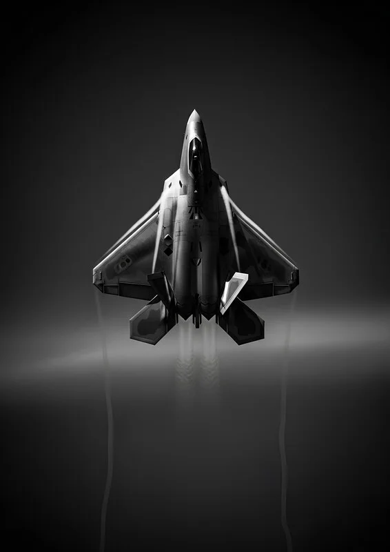 Samolepka F-22 Raptor: Stealth Superiority in Monochrome