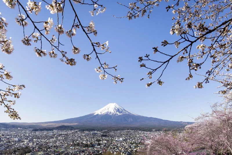 Samolepka Fantastic view of Mount Fuji with cherry blossoms