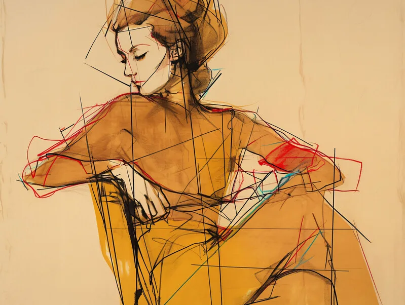 Samolepka Fashion Illustartion & drawing of a woman sitting, Portrait