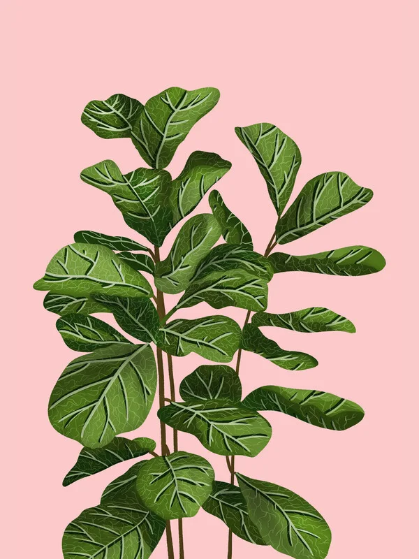 Hand drawn abstract graphic illustration of a Fiddle Leaf Fig plant.
