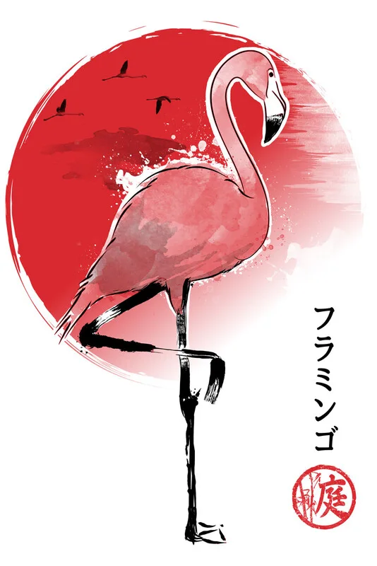 Obraz na plátně Flamingo sumi e