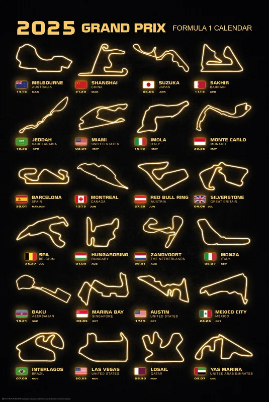 Plakát Formula 1 Season Calendar 2025