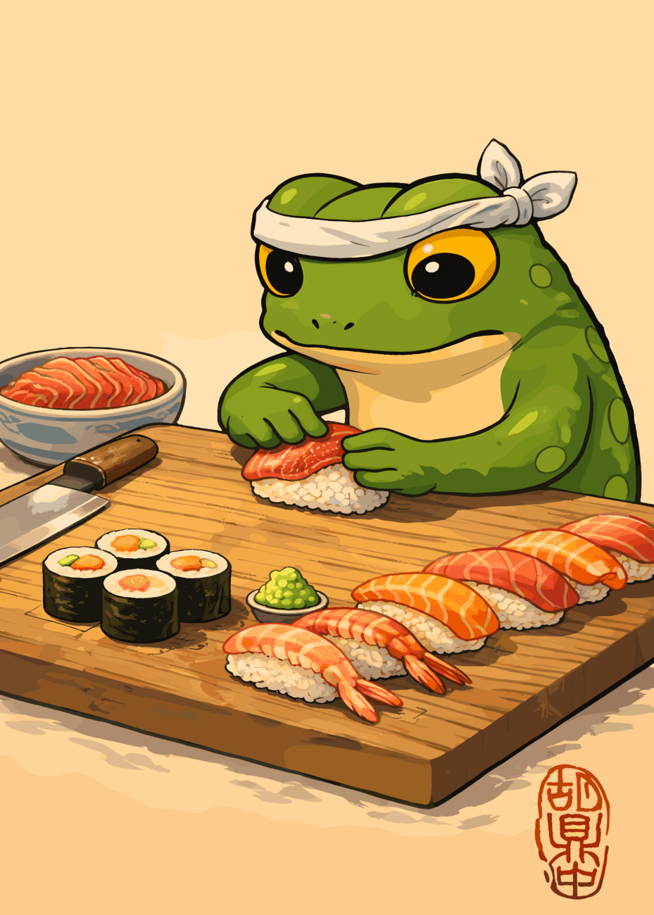 Obraz na plátně FROG SUSHI CHEF