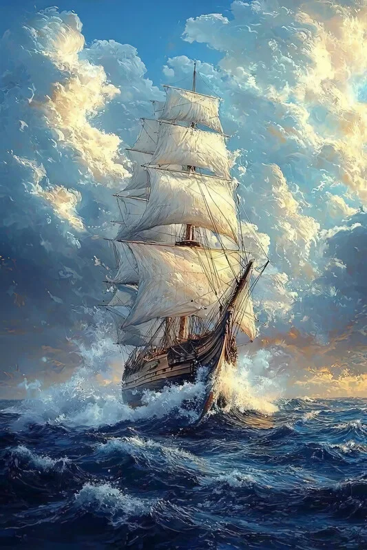 Samolepka Full-Rigged Ship Sailing through Ocean Storm, Wall Decor