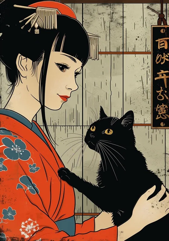 Samolepka Geisha and cat