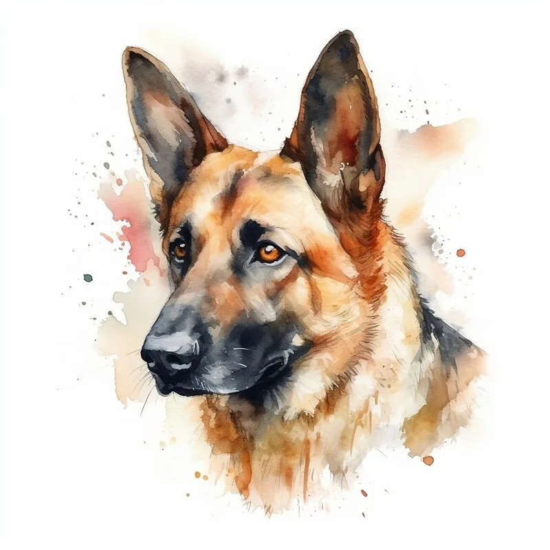 Samolepka German shepherd dog beautiful art, watercolor, white backgro