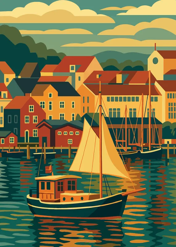 Samolepka Germany - Flensburg Sailboat Scene - Retro Art Deco