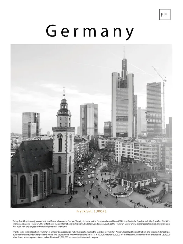 Obraz na plátně Germany: Frankfurt Cityscape in Black and White