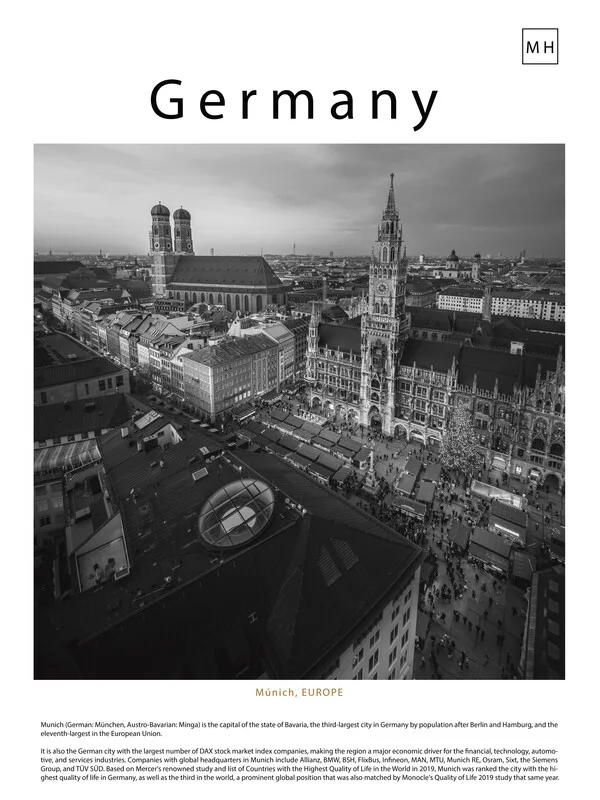 Obraz na plátně Germany: Munich Cityscape in Black and White