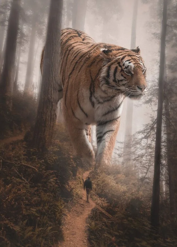 Obraz na plátně Giant Tiger in Forest autumnal colours