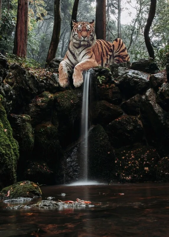 Samolepka Giant Tiger Waterfall and robin in jungle