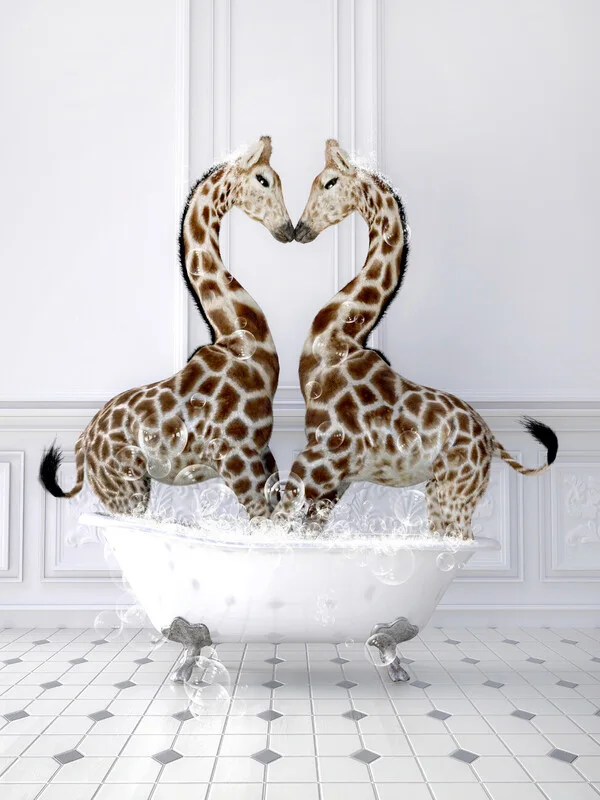 Samolepka Giraffe floating in the bathtub, animals in Tub Print art