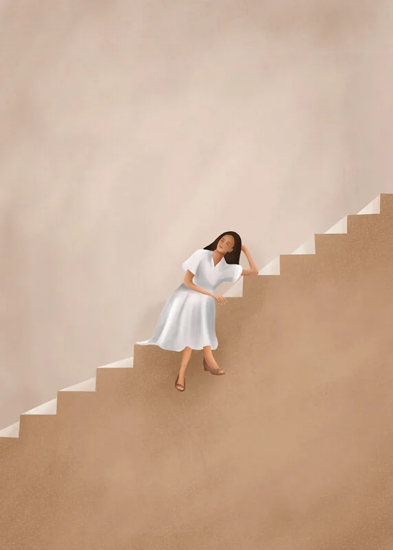 Plakát Girl Thinking on a Stairway