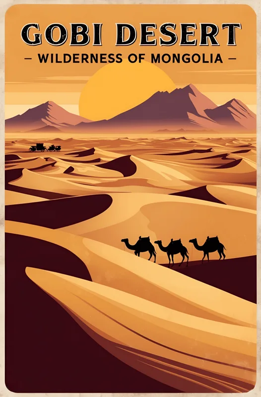 Samolepka Gobi Desert Vintage Poster – Mongolian Wilderness Art Print